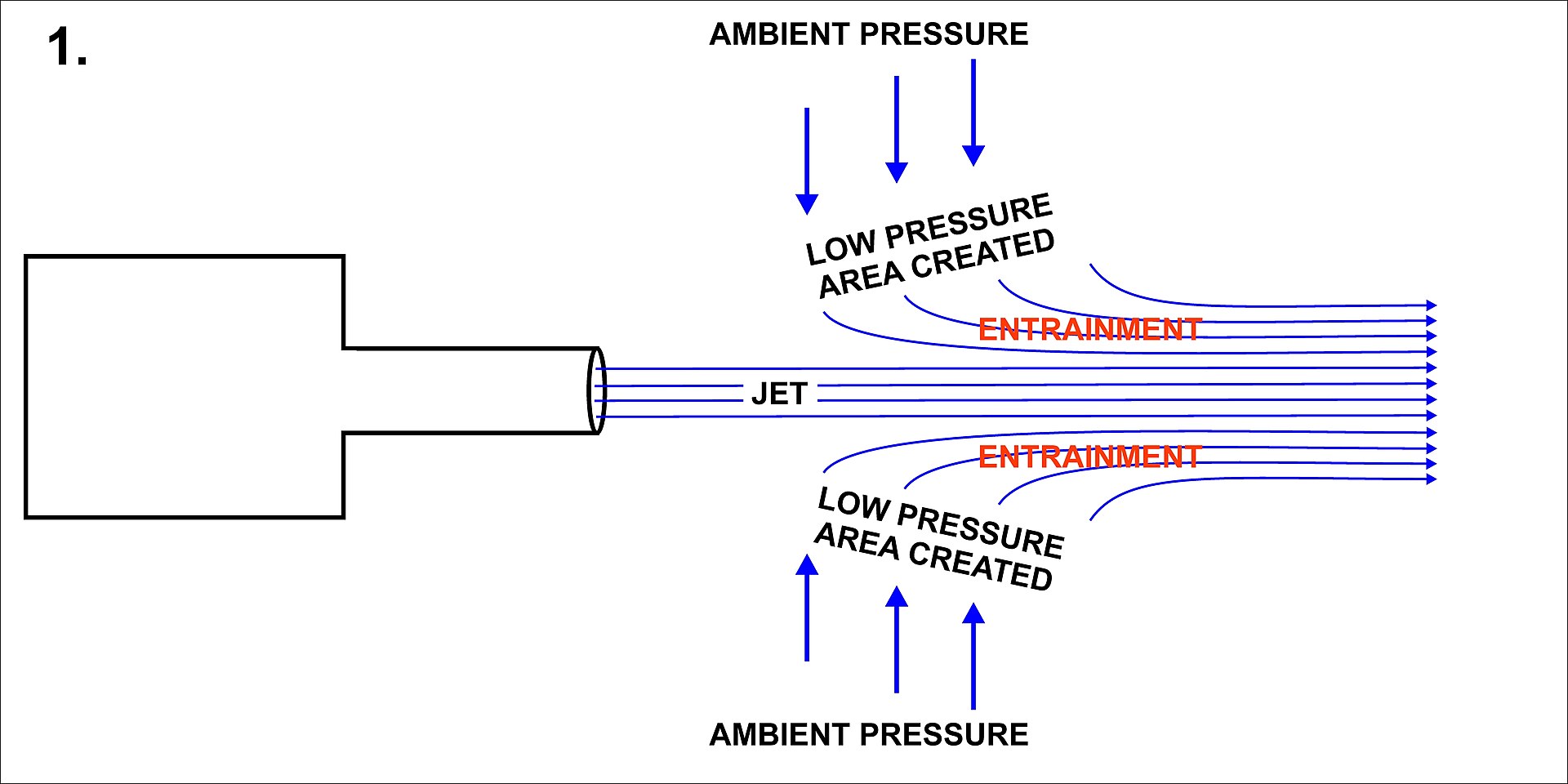 | 一股气流会从其周围环境中卷入空气分子,导致气流周围的气压下降。 | ![]() |