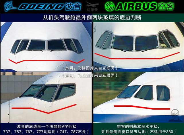 - 空客A320:侧面驾驶舱玻璃的下边缘几乎是一条完整的直线,看起来更“平整”。